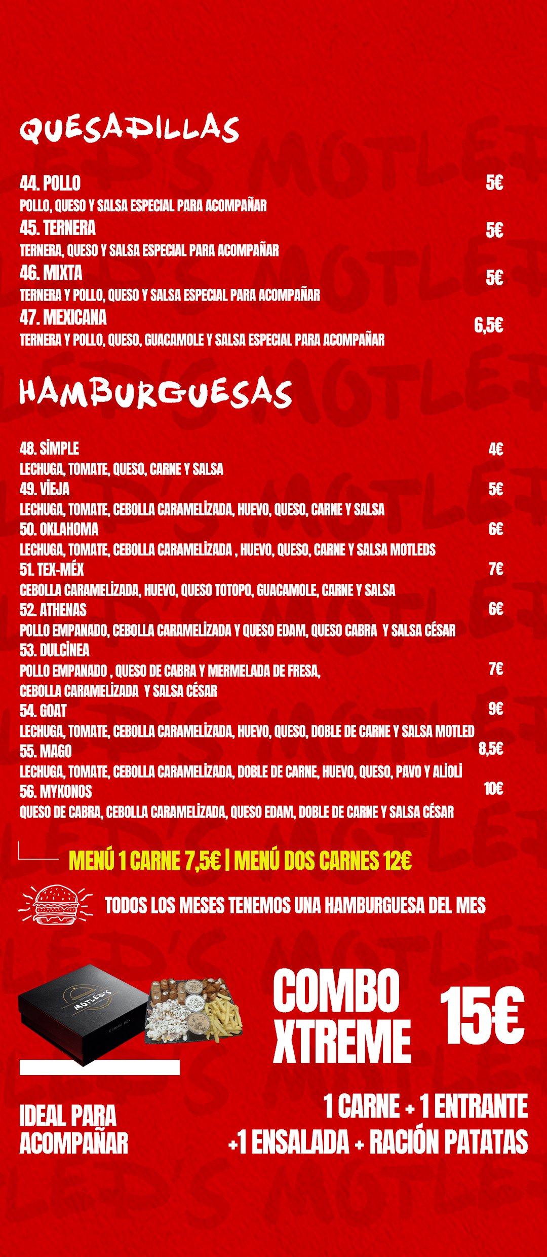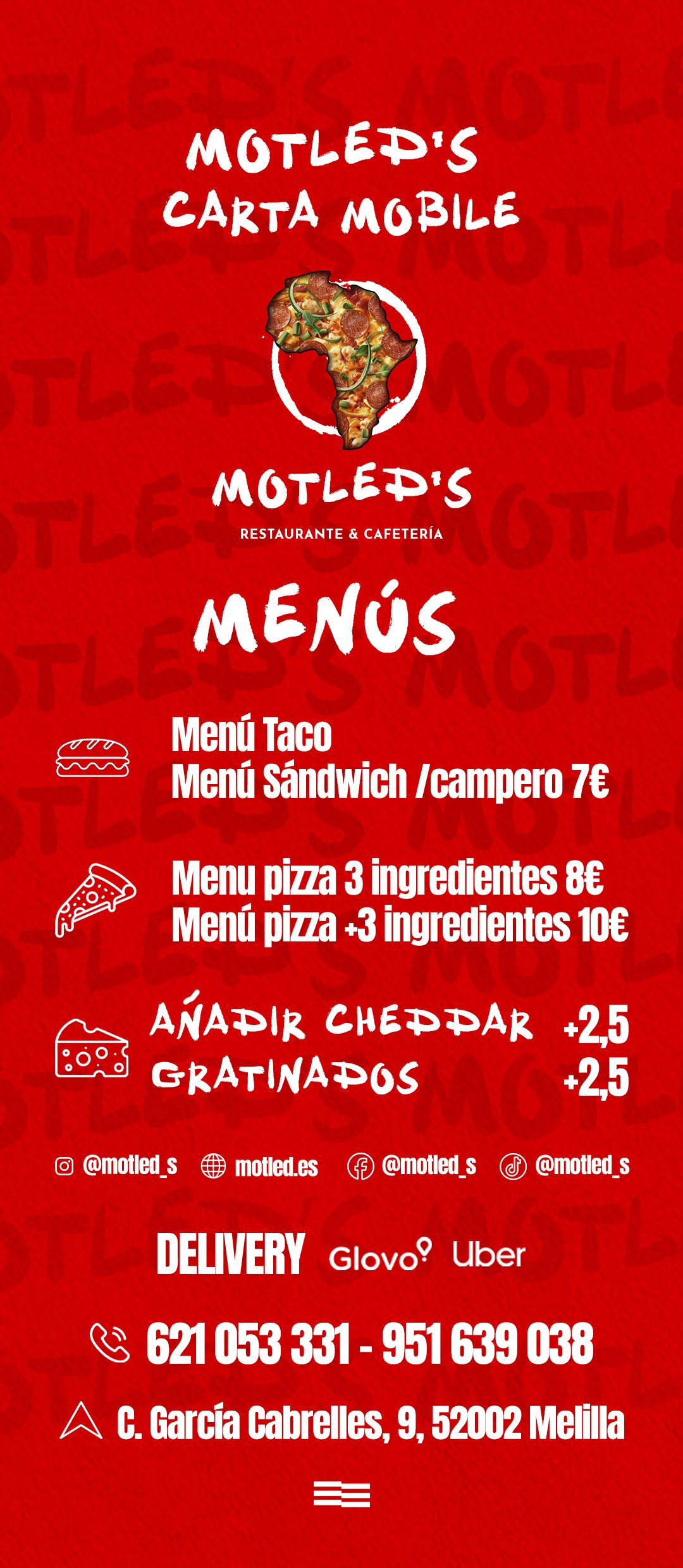 En Motled’s trabajamos con sabores que conquistan el paladar: pizzas irresistibles, patatas al horno gratinadas y tacos franceses con el toque que nos hace únicos.