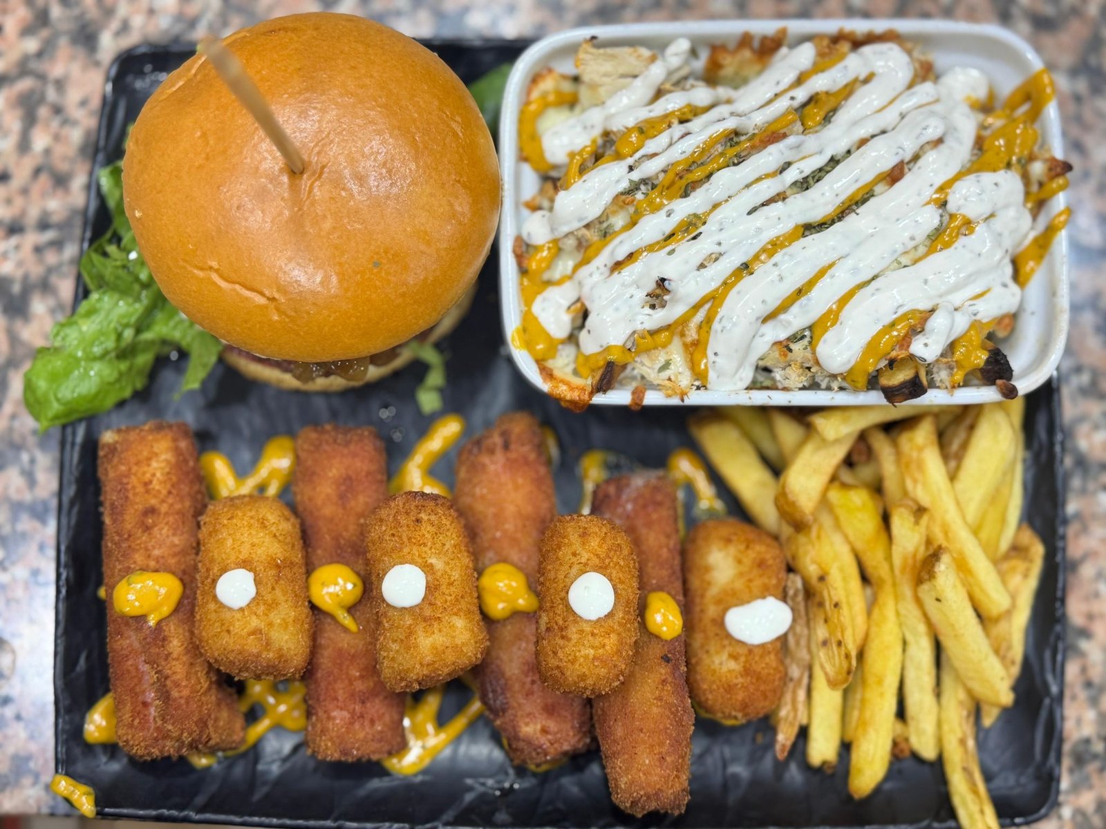 Pizzas al horno, patatas gratinadas, tacos y combinados.